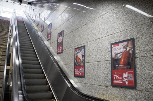 梯楣廣告位于站廳通往站臺的電梯樓梯上端,為進出站臺的重要路徑之一。