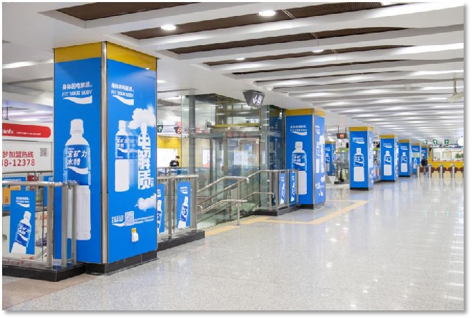 創意玻璃貼為粘貼在站臺與站廳上的玻璃圍欄上的海報,可粘貼的范圍廣泛,并且廣告位置以單幅畫面計算,粘貼位置與組合靈活多變;