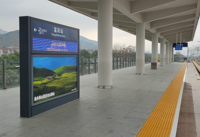 富陽(yáng)站站臺(tái)層站名牌雙面看牌廣告