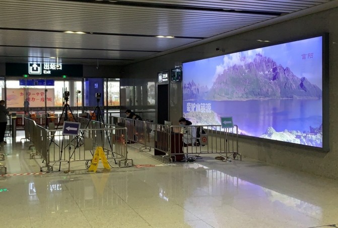 富陽(yáng)站出站廳出站檢票口墻面燈箱廣告
