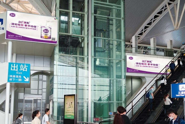 廣州南站出發(fā)層?xùn)|落客進(jìn)站大廳電梯兩側(cè)落地?zé)粝鋸V告 · 2塊