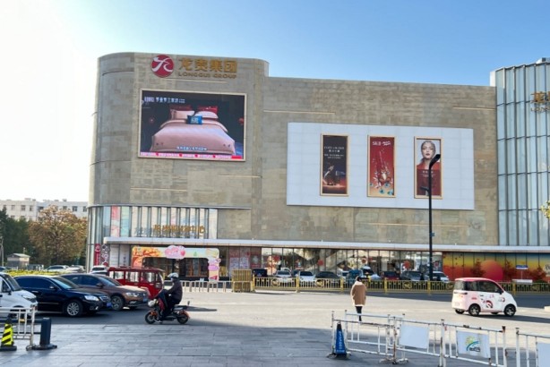 大屏位于濟(jì)寧太白中路龍貴購物中心樓體,濟(jì)寧龍貴購物中心是目前為止?jié)鷮幬ㄒ灰患覔碛休p奢品牌的商場。