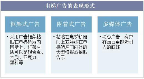 隨著廣告的形式變得越來越多樣化,電梯廣告作為一種新興的廣告媒體形式,近年來逐漸得到越來越多的廣告商青睞,電梯廣告是指在城市樓宇電梯內(nèi)壁上制作、刊載的廣告,以商務(wù)電梯、樓宇電梯為主。電梯廣告的表現(xiàn)形式主要有三種,即框架式廣告、附著式廣告和多媒體廣告,其中框架式廣告主要采用廣告框架粘貼懸掛于電梯轎廂內(nèi)部,附著式廣告是指粘貼在電梯內(nèi)外的大型海報(bào)或招貼告示,多媒體廣告屬于動(dòng)態(tài)廣告,與靜態(tài)廣告相比更能吸引眼球。