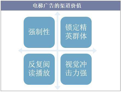 與電視廣告和網(wǎng)絡(luò)廣告相比,電梯廣告具有一定的強(qiáng)制性,用戶可以在乘坐電梯期間同時(shí)觀看框架和視頻的廣告信息,視覺沖擊力較強(qiáng)。同時(shí),電梯廣告費(fèi)用低廉,可反復(fù)閱讀,能傳遞更多的信息。此外,城區(qū)中高檔的商住樓里集中了城市主力消費(fèi)群體,電梯廣告的目標(biāo)性較強(qiáng),能快速鎖定精英群體。