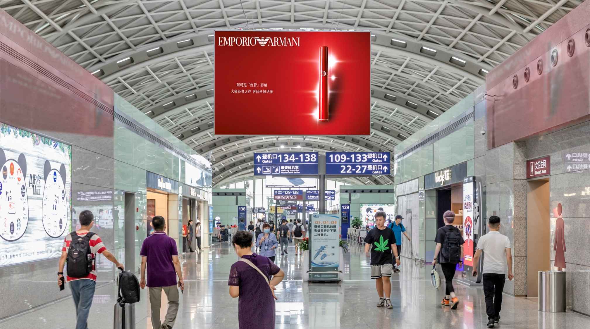 廣告位置:T2航站樓二層出發區域 (旅客行走方向正迎面)